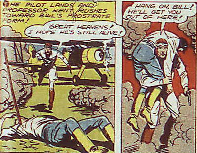 So, where were we? Ah, yes, Action Comics #41 finds Bill, Prof, and nosy tag-along Sheila "headed for the coast". Along the way, they stop at a British military post, where...